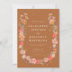 Invitation mariage de automne Boho Fleur sauvage Wreath en terre cuite Célébrez votre mariage de automne avec cet élégant faire-part de mariage à fleurs boho, avec une couronne fleur sauvage peinte à la main dans des couleurs d'automne riches. Parfait pour un mariage à thème bordeaux et orange brûlé, cette invitation rustique allie charme naturel et sophistication artistique. Conçu par l'artiste Catherine Sweetman, ce faire-part de mariage unique présente une couronne de fleurs séchées magnifiquement détaillée dans des teintes chaudes, terreuses, orange brûlé, terre cuite, nombre brûlé, corail, pêche, brun, jaune, vert, violet et rose tendre. L'arrière - plan en terre cuite ajoute un ton profond et romantique, tandis que le script orange brûlé améliore l'esthétique naturelle et automnale. Idéale pour les mariages rustiques, bohèmes, vignobles, grange, bois ou extérieurs, cette invitation capte l'essence de l'automne avec une touche d'élégance fantaisiste. Que vous planifiez une célébration de septembre, octobre ou novembre, cette invitation fait une première impression étonnante. Entièrement personnalisable avec des modèles faciles à modifier, vous pouvez personnaliser tous vos détails mariages sans effort. Si vous recherchez un design élégant et d'inspiration nature qui vous parait à la fois intemporel et moderne, ce faire-part de mariage d'automne est le choix idéal.