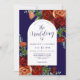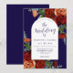 Rustic Fall marine blue Faire-part de mariage - Watercolor Florals in Burnt Orange and Burgundy Célébrez votre mariage d'automne en style avec cette invitation rustique mariage de automne avec des aquarelles originales des oeuvres florales de Catherine Sweetman. Conçue avec une palette chaude et terreuse d'orange brûlé, de bordeaux, de terre cuite, de pêche et de brun, cette invitation présente des roses peints à la main, des eucalyptus, des herbes séchées et du feuillage, parfaits pour un mariage rustique, bohème, jardin, bois ou extérieur. Placé face à un riche arrière - plan bleu marine, le design allie charme vintage et typographie moderne et élégante, y compris un script élégant couleur terre cuite. Cette invitation est idéale pour les mariages d'automne, les mariages de grange, les cérémonies de plein air ou les célébrations boho chic. Entièrement personnalisable, vous pouvez personnaliser ce modèle avec vos coordonnées de mariage (noms, date, heure et lieu), ce qui en fait un moyen unique et mémorable d'annoncer votre grand jour. Faisant partie d'une suite de coordination de la papeterie mariage florale aquarelle, il apporte une touche artistique sophistiquée à votre planification mariage.