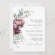 Une faire-part de mariage florale romantique qui capte l'essence de l'élégance rustique avec son bouquet voûté de pivoines et de roses en harmonisant bordeaux, prune et rose poussiéreux avec une végétation d'eucalyptus en vogue. Si belle pour les mariages d'automne ou d'hiver avec son riche jeu de couleurs. Les éléments botaniques féminins apparaissent avec style et charme boho. Personnalisez le modèle de texte avec les détails de votre mariage.