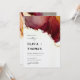 Un modèle d'invitation mariage de automne qui présente une scène d'aquarelle peinte et abstraite avec un effet d'encre or (l'or est un effet numérique, pas un vrai papier d'aluminium !) en bordeaux et orange, et de la calligraphie moderne. Classé et élégant, simple et moderne, il est un choix agréable pour un mariage d'automne sur la plage - ou simplement un mariage d'automne pour un couple qui aime les couleurs d'automne et le design moderne.