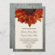 Une invitation mariage de automne avec une image de bois de bardeaux encadrant la face avant. Image du tournesol orange du haut. Personnalisez le texte avec les détails de votre occasion. Le côté arrière est l'image en bois d'écorce.