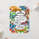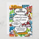 Une invitation de mariage amusante, tendance, moderne et inspirée de l'art pop de la bande dessinée qui met le boum, zap, pow dans tout événement de célébration d'un couple de super-héros. Le verso présente un motif de bande dessinée assorti que vous pouvez remplacer par votre propre image ou photo. Conçu par Thisisnotme©