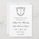 La carte d'invitation de mariage Baroque Crest est un chef-d'œuvre intemporel, alliant une élégance classique à un charme vintage. Son design est centré autour d'une palette noir et blanc sophistiquée, évoquant un sentiment de formalité et de raffinement adapté à un mariage royal. L'invitation présente un bouclier ornemental botanique proéminent, qui sert de point focal, dégageant une atmosphère de noblesse et de grandeur.