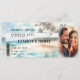 Un design branché d'un billet d'avion avec un thème de destination tropicale (Hawaii, etc.) ravira les couples et les clients, impatients de voir le jour. Un doux thème pastel, inspiré de l'image de plage tropicale qui donne à l'arrière - plan de cette invitation de mariage de destination, des illustrations vintages comme détails (avion, tampon hibiscus) rehaussent le charme. Modèle pour une photo du couple heureux.