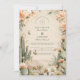 Un design mariage romantique d'inspiration désertique avec cactus aquarelle, florale de pêche douce, papillons et paysage montagneux muet. Parfait pour les mariages de plein air boho, sud-ouest et rustique.