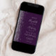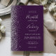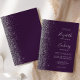 Le bord gauche de cette élégante faire-part de mariage moderne présente un style de parties scintillant en faux argent. Le texte personnalisable associe écriture gris argenté, copperplate et polices italiques sur un arrière - plan violet foncé. L'envers présente une parties scintillant violette et argentée assortie.