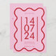 Limite minimaliste rose et rouge ondulée enregistrer l'invitation de date. Ce mariage moderne enregistrer l'invitation de date dispose d'un site mariage QR code.