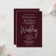 Une élégante faire-part de mariage bordeaux minimaliste au texte blanc.