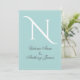 Arrière - plan bleu oeuf Robin avec un monogramme blanc frais. Les noms de mariée et de mariée sur le devant. La typographie Invitation au verso de cette belle invitation est également dans un script correspondant. Juste magnifique. Satisfaction 100% client garantie avec "Zazzle".