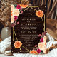 Elégant Boho Aquarelle Rouge et Orange automne fleurs automnales et conception de feuillage avec cadre géométrique or, confetti parties scintillant or et arrière - plan de bois rustique