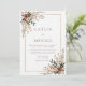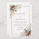 Cette faire-part de mariage fleurie rustique présente un agencement d'angle magnifiquement équilibré de fleurs d'aquarelle douce dans les tons chauds de terre (terre cuite, ivoire et vert sauge) encadré d'une élégante bordure double or. L'arrière - plan blanc minimaliste garde le design propre et intemporel tout en permettant à votre texte personnalisé d'être le point focal. Idéale pour les mariages d'inspiration nature, de plein air ou bohème, cette invitation est également suffisamment polyvalente pour être utilisée pour des douches nuptiales, des renouvellements de voeux, des fêtes de fiançailles, ou même des événements saisonniers comme les fêtes d'automne ou les soirées de jardin. La mise en page entièrement personnalisable facilite l'adaptation à votre occasion unique : changez les polices, les couleurs et le libellé pour en faire le vôtre. Que vous planifiez une cérémonie d'automne romantique ou une réunion de campagne chaleureuse, ce design floral donne un ton chaleureux et naturel, à la fois élégant et accueillant.