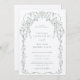 Elégant Cadre Vert Sage Inspiré Victorien, faire-part de mariage. Caractéristiques modèles, typographie à la sauge tendance avec détails modèle sur le dos.