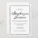 Ajoutez une touche de charme et de personnalité à votre mariage grâce à ce simple Faire-part de mariage de cadre blanc et noir. Conçue dans un style minimaliste noir sur blanc, cette invitation saura vous séduire par l'équilibre parfait entre élégance moderne et créativité ludique. Le point focal est un cadre fantaisiste et ondulé dessiné à la main qui ajoute une touche artistique légère — idéal pour les couples qui veulent quelque chose de amusant et un peu décalé. À l’intérieur du cadre, les noms de mariée et de mariée occupent le devant de la scène dans une police audacieuse et décalée, pleine de caractère et de style, faisant apparaître vos noms avec une énergie joyeuse. Que vous planifiez une cérémonie décontractée en plein air ou un rassemblement urbain intime, cette invitation unique donne un ton à la fois décontracté et mémorable. Le texte personnalisable vous permet d'adapter chaque détail à votre journée spéciale.