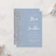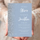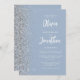 Le bord gauche de cette élégante faire-part de mariage moderne est orné d'une bordure en faux parties scintillant argenté. Le texte personnalisable combine un script blanc et des polices sans serif sur un arrière - plan bleu poussiéreux. L'envers présente un design bleu et argent poussiéreux assorti.