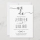"We do" écriture cursive style manuscrit calligraphie noir et blanc faire-part de mariage. L'arrière comprend un motif géométrique noir et blanc.