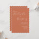 Une belle conception mettant en valeur la typographie de calligraphie de script élégante sur un arrière - plan orange brûlé en terre cuite. Parfait pour tous ceux qui aiment les conceptions minimalistes modernes. Un design faire-part de mariage design et tendance avec des éléments classiques. Des articles de papeterie mariage correspondants et d'autres formats d'invitation de mariage sont également disponibles.