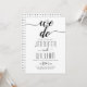 "We do" élégant script cursif style manuscrit calligraphie de style noir et blanc faire-part de mariage. L'arrière comprend un motif géométrique noir et blanc.