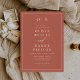 Invitation vos invités avec ce minimaliste faire-part de mariage de calligraphie moderne en terre cuite. Doté d'un arrière - plan chaleureux en terre cuite, d'élégants accents de script et d'une typographie moderne propre, ce design allie charme rustique et simplicité contemporaine. Parfait pour les mariages de boho, les fêtes du désert, les cérémonies d'automne ou les couples qui aiment la papeterie terrestre et élégante. Personnalisez avec vos détails pour un souvenir intemporel.