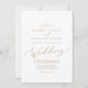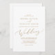 Cette délicate carte de faire-part de mariage en or est parfaite pour un mariage moderne. Le design minimaliste romantique présente une belle et élégante typographie de champagne jaune doré sur un arrière - plan blanc au look épuré et simple.