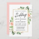 Script de calligraphie moderne, Elégant Aquarelle Eucalyptus Vert Roses Rose Rose Or Faire-part de mariage - Rose Blush Back
