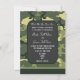 Motif de camouflage de l'armée verte moderne, invitation de mariage formelle, personnalisez facilement les noms de mariée et de mariée au texte modèles pour créer une invitation personnalisée unique pour votre camo élégant spécial, rouge hillbly thème ou masculin occasions spéciales et célébrations. Fait partie d'une suite de jeu de mariages correspondante.