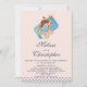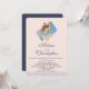 Un joli cerf marron avec un dos tacheté de blanc. Un petit oiseau perché sur le dos du cerf. Un bouquet floral élégant en rose pastel et vert. Un rectangle bleu derrière l'image. Une bordure à pois le long du bas. Design innocent et doux. Personnalisez avec vos détails de mariage.