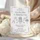 Ce faire-part de mariage enchanteur mêle des doodles dessinés à la main et de la typographie manuscrite en noir intemporel. Orné d'accents floraux, d'une romantique cupide, d'une gracieuse colombe, de groupes mariages et d'une illustration de gâteau mariage sucré, il capture la joie de l'amour d'une manière fantaisiste. L'ajout d'un code QR et d'un lien vers le site Web vous permet d'accéder facilement à RSVP et à d'importants détails mariages, alliant charme traditionnel et commodité moderne.