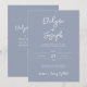 Si vous cherchez une élégante invitation simple minimaliste de modèle mariage simple, il est parfait pour vous. Ce qui présente un bleu poussiéreux arrière - plan et blanc simple lettre à la main prénoms de mariée et mariée. et des informations modifiables avec code QR personnalisable. Abordable et c'est l'e-invitation électronique numérique aussi. Toutes les informations sont personnalisables en cliquant sur le bouton personnaliser. Alors attrapez-le et faites-le vous pour que vous fassiez de vous des invitations engagés et enthousiasmés.