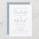 Avec des noms de style signature, cette élégante faire-part de mariage bleue poussiéreuse peut être personnalisée avec toutes vos informations spéciales sur le jour de mariage sur le devant et vos détails de site Web mariage et le code QR au verso. Conçu par Thisisnotme©