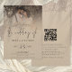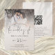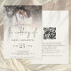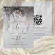 Script moderne Photo Overlay QR Code Faire-part de mariage. Ajoutez votre code QR à votre site Web mariage au verso afin que vos invités puissent RSVP et voir tous les détails en ligne sans avoir besoin de pièces jointes séparées. Une typographie informelle en noir pour l'en-tête principal du Mariage De compléter le reste du texte que vous pouvez facilement personnaliser. Remplacez l'exemple de photo par votre préféré.