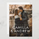Un revêtement typographique moderne avec de grands noms et une photo à fond plein sont les caractéristiques de cette simple faire-part de mariage. Il y a une deuxième photo et un code QR au dos de la carte. Cliquez sur le bouton Personnaliser pour customiser cette conception.