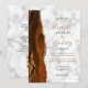 Le bord gauche de cette élégante faire-part de mariage moderne est orné d'une bordure d'aquarelle orange brûlée, recouverte d'une parties scintillant en faux or. Le texte personnalisable associe écriture manuscrite noire et dorée, polices cuivre et italique sur un arrière - plan gris et blanc en marbre. L'envers offre de l'espace pour les détails mariages sur un arrière - plan en marbre gris et blanc, ainsi qu'un code QR que les clients peuvent scanner pour visiter votre site Web et RSVP, ce qui permet d'économiser le coût d'impression et d'envoi de cartes RSVP séparées.
