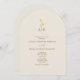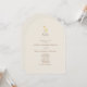 Cette faire-part de mariage moderne en arc présente un arrière - plan crème doux, un script élégant et un délicat monogramme de fleur sauvage jaune. Un code QR discret (à l'arrière ou en option) facilite l'accès à RSVP ou à votre site mariage, parfait pour les mariages botaniques, minimalistes ou rustiques.