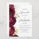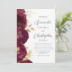 Le bord gauche de cette élégante faire-part de mariage moderne est orné d'une bordure florale bordeaux bordée d'un feuillage en faux feuille d'or. Le texte personnalisable combine le script gris charbon et les polices sans serif sur un arrière - plan blanc. L'envers offre de l'espace pour les détails du mariage, ainsi qu'un code QR que les clients peuvent scanner pour visiter votre site Web et RSVP, ce qui permet d'économiser le coût d'impression et d'envoi de cartes RSVP séparées.
