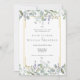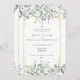Verdure aquarelle fleurie lilas tout en un faire-part de mariage avec de jolis feuilles de sauge et lilas qui tombent sur un cadre doré élégant renfermant vos détails mariages ensemble dans un texte élégant classique. L'inverse contient les détails de votre site Web mariage et de votre RSVP, ainsi que le code QR. Conçu par Thisisnotme©