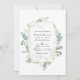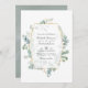 Invitation photo mariage à l'eucalyptus à bois sauvage avec cadre géométrique or et lavage à l'aquarelle à la sauge argentée pour être rapidement et facilement customisé à vos détails de l'événement. Idéal pour un thème ou un mariage de jardin. Le code QR au verso dirige vers votre site mariage où les gens peuvent en savoir plus et rsvp.