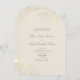 Faire-part de mariage voûtée élégante avec des oeuvres d'art florales en or délicat sur un arrière - plan en ivoire avec un code QR à l'arrière pour RSVP et l'accès au site web. Romantique et moderne avec une touche vintage, parfait pour des célébrations mariages intemporelles et formelles.