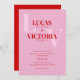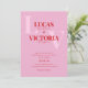Faites une déclaration avec notre design faire-part de mariage rose et moderne. Avec ses couleurs vives et sa typographie contemporaine, cette invitation est parfaite pour les couples qui veulent mettre en valeur leur style unique. Si vous souhaitez modifier le texte, sélectionnez "Détails". Pour ajuster la position, la police ou la couleur du texte, cliquez sur "Modifier à l'aide de l'outil de conception".