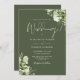Cet élégant faire-part de mariage feuille de verdure vert olive peut être personnalisé avec vos détails dans la typographie moderne avec les détails de votre site web mariage et votre code QR au verso. Conçu par Thisisnotme©