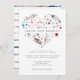 Un grand coeur Boho Chic à fleurs et en plumes encadre les noms du couple mariage. Les plumes sont une combinaison douce et neutre de tons rose pâle et bleu clair. Certaines des plus grandes fleurs sont roses rousses, tandis que les plus petites sont bleu vif et rouge écarlate. Il y a aussi de minuscules coeurs rouges qui flottent dans les coeurs. Le dos de l'invitation est rayé. Les rayures complètent les couleurs du coeur. Ce faire-part de mariage Boho fait partie de la collection Spiced Blush. Il contient des cartes RSVP, des étiquettes d'adresse de retour, des scellés d'enveloppe et de nombreux autres éléments que vous pouvez utiliser pour créer un paquet de faire-part de mariage unique. Vous devriez voir un lien sur cette page pour vous y emmener. Contactez-moi, si vous ne le voyez pas ou avez besoin d'aide avec un article.
