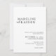 La faire-part de mariage présente un design minimaliste et élégant avec un arrière - plan blanc et un texte noir propres. Il utilise un mélange de polices serif et cursive en gras, avec les noms du couple en grand texte pour l'accent. Les détails sont centrés et écrits en caractères serif plus petits, créant une disposition équilibrée et raffinée avec un espace blanc ample pour une esthétique moderne et sophistiquée. Ce faire-part de mariage au design minimaliste est doté d'une grille de quatre photos de couple au sommet. La section inférieure utilise une typographie serif élégante et centrée pour les détails clés, créant un look équilibré et sophistiqué qui met en évidence la chaleur et l'intimité.