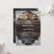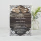 Cette invitation romantique au mariage campagnard rustique avec deux coeurs de burlap contre un arrière - plan en bois de grange orné de dentelle fleurie blanche et de lampes à cordes est parfaite pour inviter vos invités à votre fête de campagne ou de mariage de grange.
