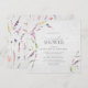 Invitation de mariage de couple carré moderne et élégant avec des motifs de fleurs sauvages aquarelle dans des nuances douces de rose blush, lilas et lavande, jaunes, bleus et feuilles botaniques vertes délicates. Personnalisez les détails de votre douche de mariée dans un noir doux accentué d'une belle calligraphie manuscrite moderne. Fait partie d'une suite coordonnée. Fait partie d'une suite coordonnée. Voir la collection complète ici : https://www.zazzle.com/collections/elegant_wildflower_watercolor_floral_bridal_shower-119635760261893795 Contactez le designer pour des produits supplémentaires. Copyright Elegant Invites, tous droits réservés.