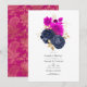 Invitation de fête de couple floral magenta viva tendance de l'année 2023 avec des accents de bleu marine.