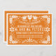 Invitation de mariage de couple d'oiseaux amoureux sous la douche au papier orange picado. Elle met en valeur deux oiseaux amoureux et un cœur d'amour avec le mot amour ainsi que des fleurs, des feuilles et de petits points sur fond orange. Ce modèle de design d'invitation de mariage floral de style d'art folklorique mexicain inspiré de la nature est idéal pour un mariage d'automne.
