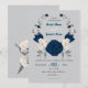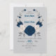 romantique bleu marine et fleurs blanches et gris feuille faire-part de mariage de couronne fleurie