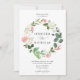Élégantes invitations à un mariage floral avec vos noms entourées d'une couronne de roses d'aquarelle rose vif et tulipes avec feuilles verts luxuriants et en cuivre. Personnalisez les invitations en ajoutant les détails de votre mariage ci-dessous. Les invitations à un mariage floral se retournent vers un arrière - plan rose pâle. Conçu pour coordonner avec notre collection de mariages florale de printemps de Blush.