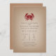 Un faire-part de mariage rustique sur le thème de la mer avec une illustration d'un crabe et au-dessus d'un arrière - plan inspiré de la carte. Personnalisez le texte avec les détails de votre occasion.