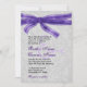 Ce design avec son arc en satin faux violet et son arrière - plan damassé gris argenté fait une élégante invitation au mariage. Je vous recommande le papier métallique en papier glacé qui donne à votre invitation un éclat spécial et brillant. Vous pouvez expérimenter avec différents types de papier pour obtenir exactement le look que vous voulez. Si vous voulez une finition brillante (qui s'applique uniquement au côté avant de votre invitation) choisissez le lin, les papiers de base ou les papiers métalliques. Si vous voulez une finition mat, choisissez le poinçonné, le feutre ou le recyclé. Cette invitation est accompagnée d'une enveloppe A7.