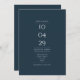Un design moderne avec vos détails de date et de mariage spéciaux dans une typographie classique et chic sur un arrière - plan bleu poussiéreux. Conçu par Thisisnotme©